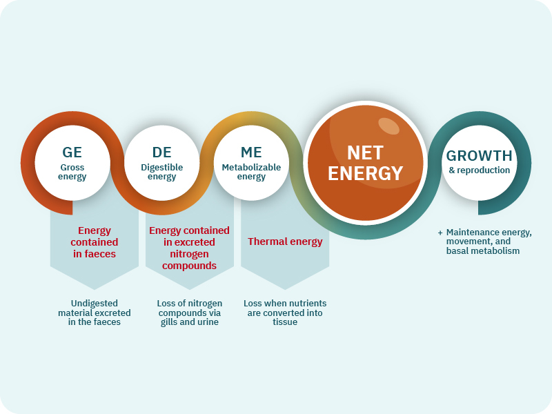 Net energy is the energy that remains for the fish to use for growth, movement, and reproduction after metabolic losses have been deducted. In the meat production sector, net energy is well known to farmers, but in fish farming, the concept is new.
